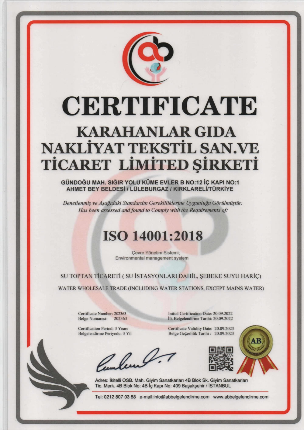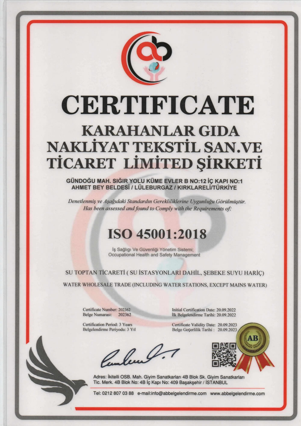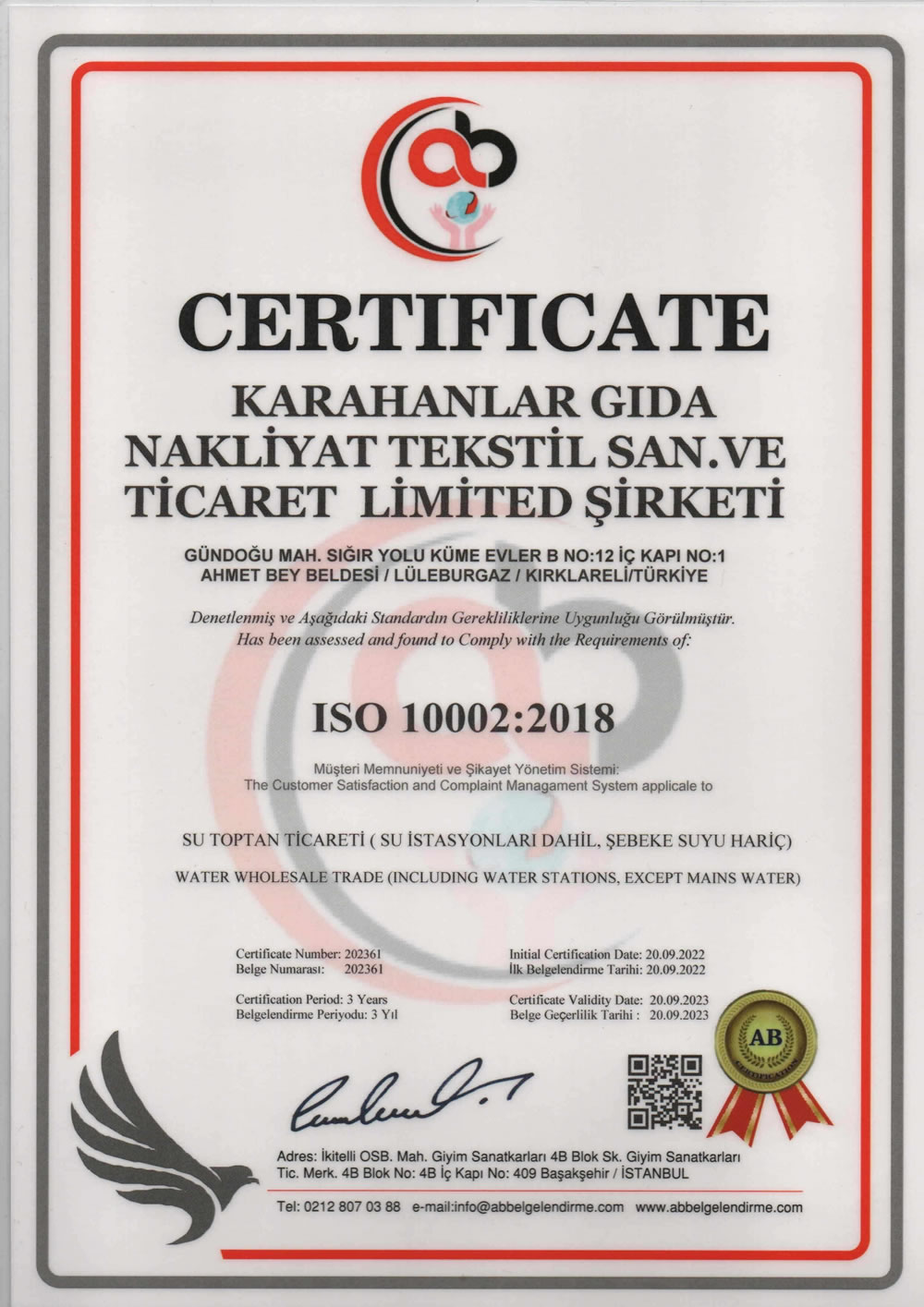 Bu belgeler satışı yaptığımız Güroluk Su’ya ait kalite belgeleridir. Markalarımızdan Güroluk Su, yüksek standartlara sahiptir ve bunu uluslararası sertifikasyonlarla bu standartları belgelemektedir.